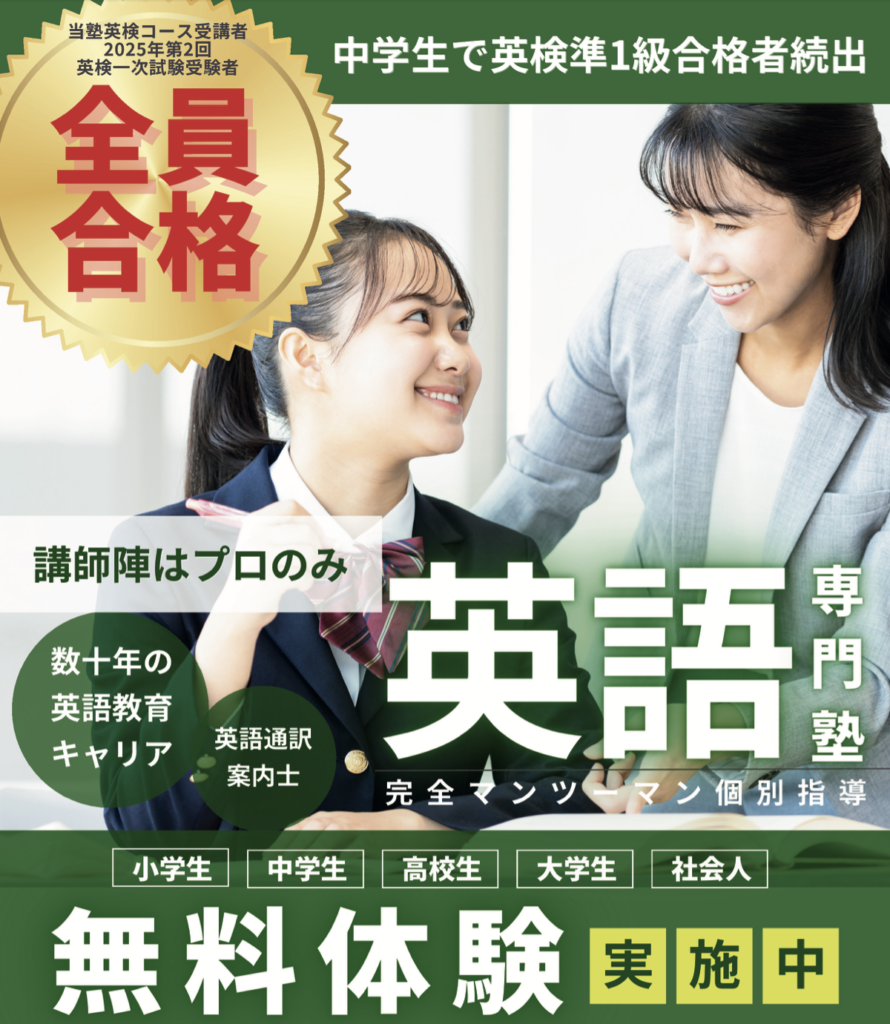 また、中学生で準1級に合格する生徒様もいらっしゃいます。